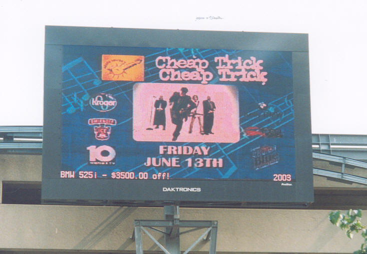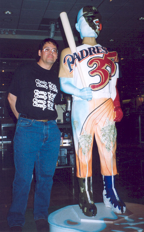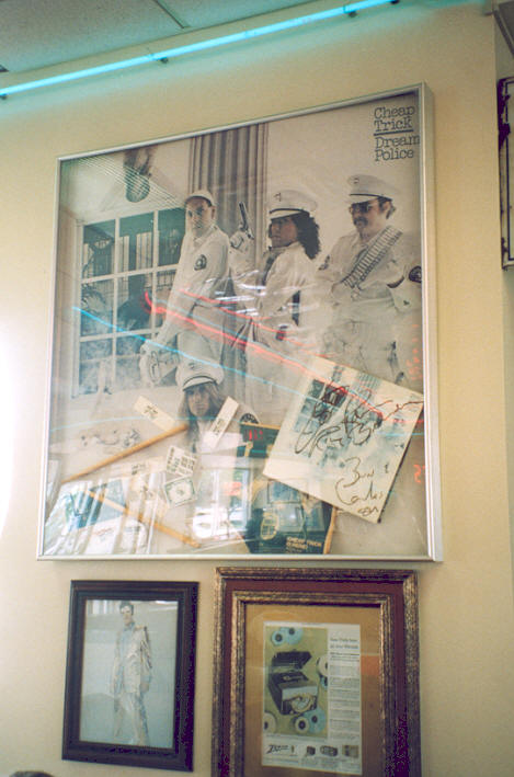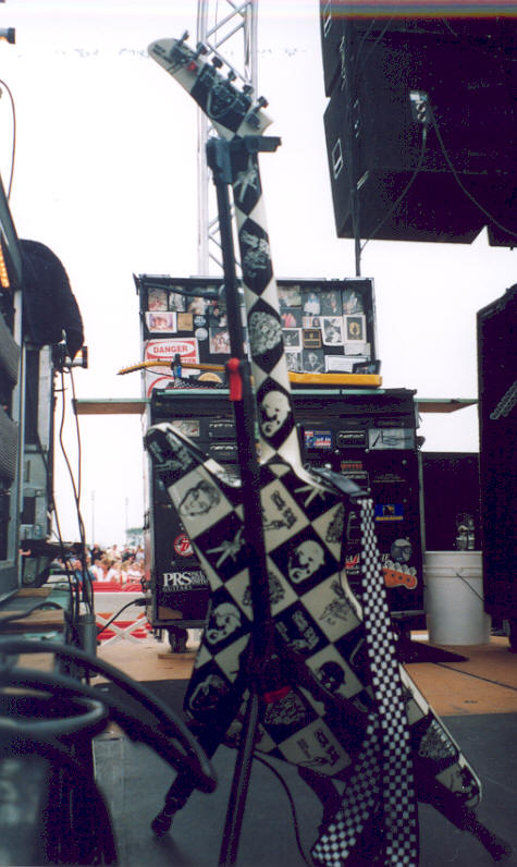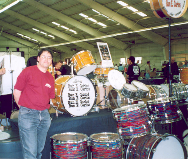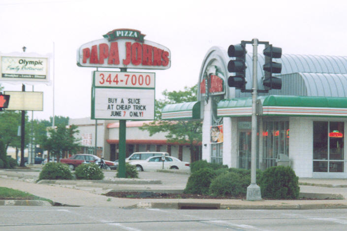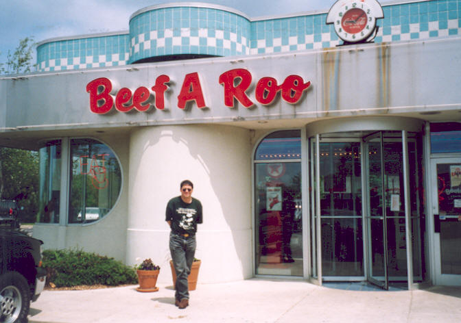 Midwest - June 2003 Saw three shows - Merrilville IN, Stevens Point WI and Altoona IA, plus the "non-show" at Columbus OH. Here's some pictures from this trip. Actually, this shot one is from mid May - Vintage & Custom Drum Show at St Charles, Illinois. Beef-a-Roo, Rockford Stevens Point, Wisconsin (I SO wanted that sign - top right!) All Star Bobblehead, Chicago Damn Yankee's! Altoonakan! Rick's cool new guitar!(Altoona) A familiar looking guitar (Altoona) Columbus (dry!) The sign at Columbus Fans at Columbus, with (barefoot) Kelly from Vesica Pisces (picture courtesy of Dawn Tucci)