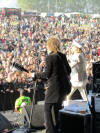 black/white Beatles shirt, DP bow tie Gonna Raise Hell, Dream Police, California Man, IWYTWM, Sick Man of Europe, Surrender, Auf Wiedersehen The set was short (38 minutes) but high energy with a good selection of uptempo numbers, ideal for a festival setting. The first surprise for me was that they opened with that monster, “Gonna Raise Hell”, which was a heck of a bar to set for the rest of the set. It went down well with the healthy sized crowd watching, possibly 6-7,000? Rick’s chat was kept to a minimum as the band sought to utilize their limited stage time as best as possible. GRH was followed by “Dream Police” and then “California Man”. Many of the crowd recognized “Dream Police”, and more recognized “I Want You to Want Me” which was of course the main crowd pleaser. After that, Rick briefly announced “Just in case you’re not sure, we are Cheap Trick… a brand new band from the US, we’re glad to be here”. (During “IWYTWM” I saw that the next song on the setlist, “If You Want My Love” was cut, due to time reasons I heard later.) The set instead continued with “Sick Man of Europe”, “Surrender”, and closed appropriately with “Auf Wiedersehen”. At the end Robin exclaimed “Thank you Donington, goodnight everyone”. The set finished at 7.18pm, and the band had gone down pretty well in front of a decent sized crowd. One minor disappointment, though there was no practical way around it, was that the band didn’t have their large checkerboard stage backdrop to display. With the stage enclosure being so high, they looked a little lost from a distance with just a big black background behind them. Mr Big used a logo backdrop, as did the next band, second on the bill Twisted Sister. However, given the other venues CT would play on this tour, it probably wasn’t worth the expense of shipping a large and heavy backdrop that might be used only once or twice. Patricia and I could have left at this point, but we stayed on. Next up was Twisted Sister, and it was vaguely disturbing, though hardly surprising given the festivals heavy rock roots, that Twisted Sister were given such an enthusiastic response. They went down well, playing their hits such as “I Am I’m Me” and “We’re Not Gonna Take It”. Lots of fist pumping, lots of MF swearing (Dee Snider rivalled Vince Neil for the most swearing frontman I’ve ever heard) and lots of guitar solo’s. Hmmm. We sort of watched from quite a way off to the side, well away from the crowd. Soon after Twisted Sister finished, Pat and I walked back to the stage, against the flow of people heading away. To each side of the stage were long walls, decorated with various advertising posters. “Pleasant” to see these walls well utilised by men as being the nearest “urinal”. Who needs portaloos when you can just pee against a wall in public? The headliner on Stage 2 was the legendary Alice Cooper, and it was a privilege to have been invited to watch his set from sidestage (many thanks to Cesare Sabatini for that kindness). Alice and his band played a 75 minute set from 9pm, and were very well received by the large crowd. We couldn’t see all the stage props and setup from the side, but it was cool to watch how Alice worked the crowd, and how his technical team worked behind the scenes. Great show, though a little shorter than his regular set. Alice finished at