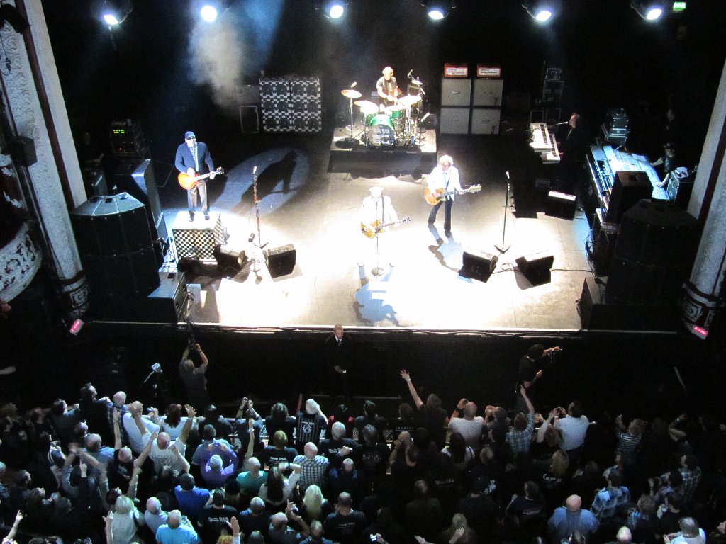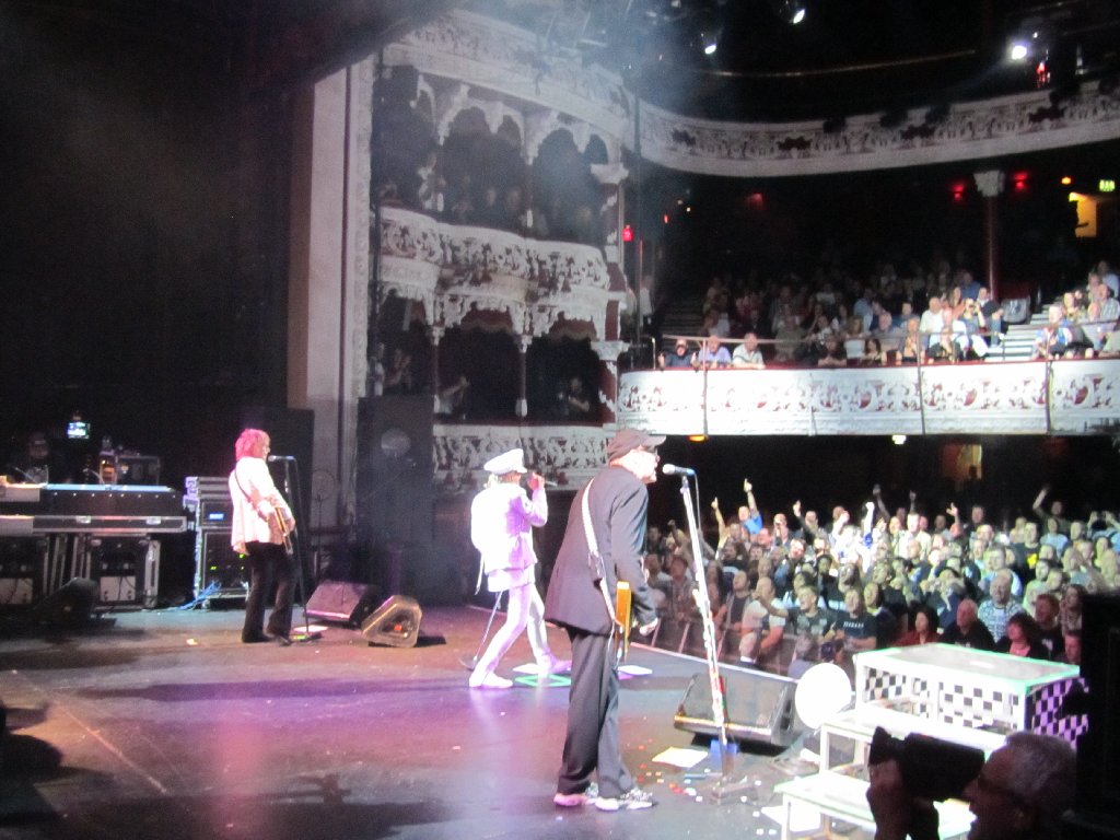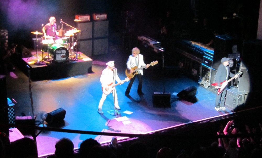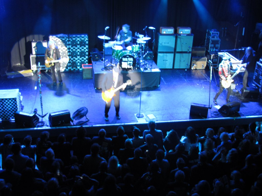 coloured Beatles shirt, DP bow tie Just Got Back, California Man, ELO Kiddies, IWYTWM, These Days, He’s a Whore, Looking Out for Number One, Tonight Its You, On Top of the World, Fan Club, House is Rockin’, Never Had a Lot to Lose, Ballad of TV Violence, Baby Loves to Rock, Sick Man of Europe, Closer, Surrender // (encore) Downed, Dream Police, Clock Strikes ten, Goodnight Now There was a good sized crowd in the venue, and they gave the band a loud and enthusiastic welcome. “Just Got Back” was a nice opener, though it had been over 30 years since they’d last played in this city! That was followed the “California Man”, “ELO Kiddies” and “IWYTWM” – a very high octane opening. After those 4 songs, Rick addressed the crowd “Yeah! Thank you very much. What’s our name? … Welcome to Bristol, Cheap Trick” He then noted fans had come from Germany, France, Bristol, London, USA, Mexico… “This is a great place for the INS! Is it alright if we play some more? We especially wrote this set for you, so if you don’t like it, get lost! This is from The Latest”. The band went into “These Days”, followed by “He’s a Whore”. As Rick later noted, “From our latest to our first”. The set continued with a nice trio of “Looking Out for Number One”, “Tonight Its You” and then “On Top of the World”. Time for the band to take a short breather, and an unusual one it was as there was a marriage proposal on stage. Lyrics from “I Know What I Want” were read, the surprised bride-to-be said “Yes” and the couple were serenaded off stage by Magic singing a swing version of “Invaders of the Heart”. After they left, Rick noted that the band were available for weddings and bar mitzvah’s! The show continued, and no songs were lost from the setlist as a result of the short interruption. Appropriately for the couple, “Fan Club” was then played. The tempo picked up again with a storming “House is Rockin” followed by “Never Had a Lot to Lose”. Another breather, with Rick asking “Did I mention we’re called Cheap Trick? Now what do you want to hear?” Various song titles were shouted out, though the set proceeded as per the setlist with the dark “Ballad of TV Violence”, “Baby Loves to Rock”, and the ever-energetic “Sick Man of Europe”. With hardly a pause for breath, the main set went to a close with the haunting “Closer” from “The Latest”, followed by the ever popular “Surrender”. Robin thanked the crowd, adding “We’re Cheap Trick, goodnight everybody”. As usual, Rick was first back on stage and asked “Does that mean you want to hear some more?” The roar hardly required confirmation, but he added “Are you SURE you want to hear some more?” The bigger roar suggested the crowd indeed wanted an extra song or two. “You can tell we like to play” Rick observed, “If we make mistakes, we mean for them to happen! Of course they never happen!” The encore swiftly