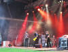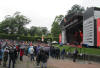 Awake and up by 1pm. I didn’t feel bad despite the ultra-late night, though I was pretty tired. We had pizza for lunch before Jorn and I left at 2:40pm to pick up Alex and two other friends who were coming up to Hamburg. It was raining hard, which wasn’t good, but hopefully it would be less wet 150 miles north at tonight’s venue. We reached the Stadtpark in Hamburg at 6.10pm, and had a rush to get in with Cheap Trick due on stage at 6.45pm (though the tickets misled us by stating 7pm). The rain had let up, though there were still grey, threatening clouds above, and it was pretty cool too. The venue was picturesque, and would have been even nicer in better weather. It was a small, natural amphitheatre in the park, surrounded by both a tall hedge and taller trees. It could probably hold a maximum of 1500 squeezed in, though the crowd was probably only a third of that when we got in. No doubt the rain and muddy conditions had put some people off. The brick stage was wide, well covered and deep. In front was a grassy area leading down to the security barrier, so quite a gap between performers and crowd. Cheap Trick were on early and had a maximum of 55-60 minutes to play, as they were opening at this (and tomorrow night show in Dresden) for the legendary Jeff Beck. The audio montage started at 6.41pm with the band taking to the stage at 6.43pm. Almost immediately the heavy rain started again, and unfortunately it rained on and off throughout Cheap Trick’s set. RN – black suit,