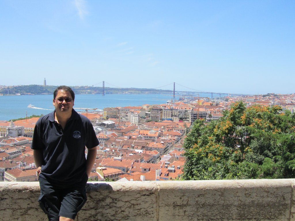 Well, the tour as such was definitely over for me. The band and crew were heading up to Bilbao today for tomorrow nights final show of the tour, at the Azkena Festival. However, I was staying in Lisbon for another day and a half, to sightsee a city that I’d never visited before. My initial plan had been to fly home today, but then I thought I should take the opportunity to take time and look around since I was here and so I’d booked to stay for two nights. It was another hot and mercilessly sunny day, reaching at least 30C. I went sightseeing in and around the Baixa, downtown area. There was some great architecture, with cobbled squares, prettily tiled streets, pastel coloured buildings, some buildings fronted in prettily decorated ceramic tiles, statues, grand facades, and the triumphal arch at the end of Rua Augusta. Small cable cars added to the distinctive atmosphere too. I walked up the hill, past the impressive façade of the Se Cathedral, and up to the Castelo de Sao Jorge, which sits high above the city and affords beautiful views over the sweep of terracotta tiled roofs of the city, the river, the Ponte 25 De Abril suspension bridge and the shoreline opposite. As befits its location, Lisbon does have a very cosmopolitan, Southern Europe and semi-tropical feel. It has to be said that some of the buildings were a little shabby, showing their faded beauty, but that only seemed to add to the city’s character. I later popped into the Hard Rock Café on Avenida Da Liberdade. With seating on two floors, it had an impressive wall with many items, including a Rick guitar and an “At Budokan” LP cover (I couldn’t tell if either was signed). However, the layout of the Café made it impossible to get close to the wall, making clear photo’s difficult. I didn’t eat there, I’ve found HRC’s to have become increasingly expensive these past few years. Instead I had a Portuguese salad and fresh grilled sardines at a nearby café at half the price of a basic HRC burger. The nearby frontage of the Estacao do Rossio station was magnificent, with its double horseshoe entrance. And it was very pretty lit up. There’s also the unusual Elevador de Santa Justa to take you from shopping street level up the hill to the ruins of the Igreja do Carmo church which looms high over the downtown area. There’s lot’s to see. It was after midnight (yet again!) before I got to bed.