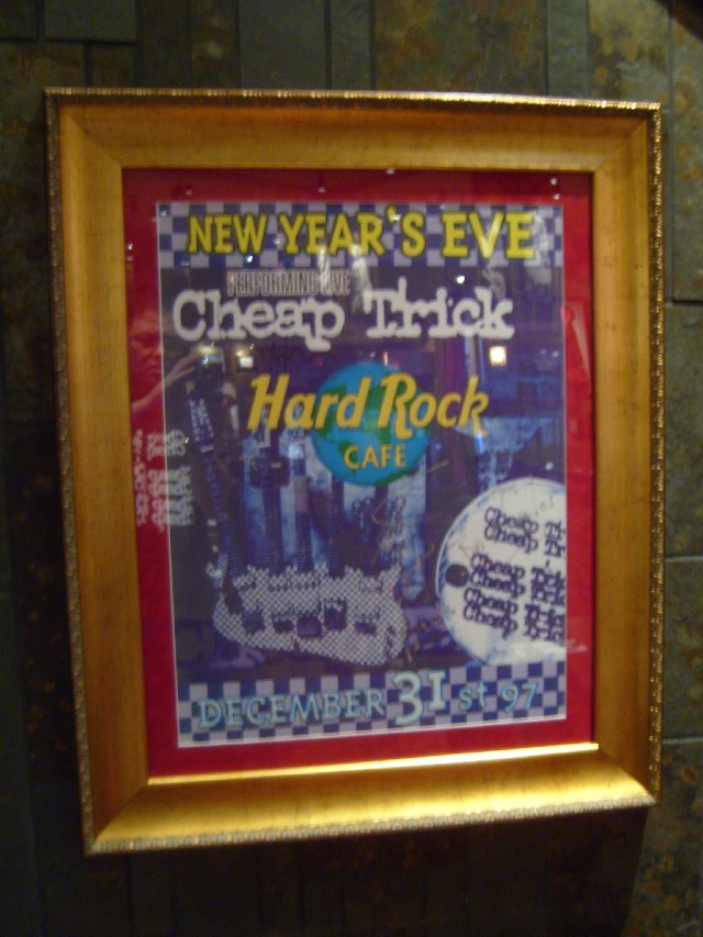 Thanks to Bart77 for letting me know that in the original HRC in San Francisco, there was a plaque in the gift shop honouring CT for playing at that Cafe on New Years Eve around 95 or 96. The Cafe has moved to Fishermans Wharf since then, and the plaque obviously didn't move with it. Does anyone have a photo of it? Nothing CT-related to be found in the Cafe at Dec 2004. Detroit Cheap Trick played at the Opening