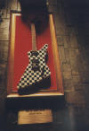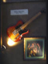 Chicago in Sept 2008 and took some more pictures (above) of the new display There are also some Cheap Trick items on the 8th floor of Chicago's new Hard Rock Hotel (opened early 2004). The first (above) is a large photo on the wall from around 1976; the second shows a display on the other side of that floors elevator lobby - the one remaining Japanese flag guitar from the 1980 tour of Japan - apparently Rick had a number made and threw one into the crowd at each show. However, the last show was interrupted by a typhoon and so this guitar survived. Thanks to Ron Faiola for sharing the first two pictures and info. I took the third and fourth shots in Nov 04, giving another picture of the suit and a shot of the plaque on the wall which explains all! Thanks to Lisa J