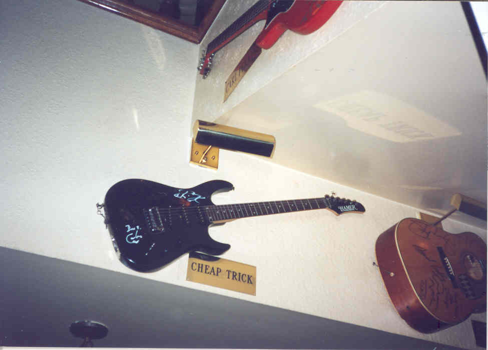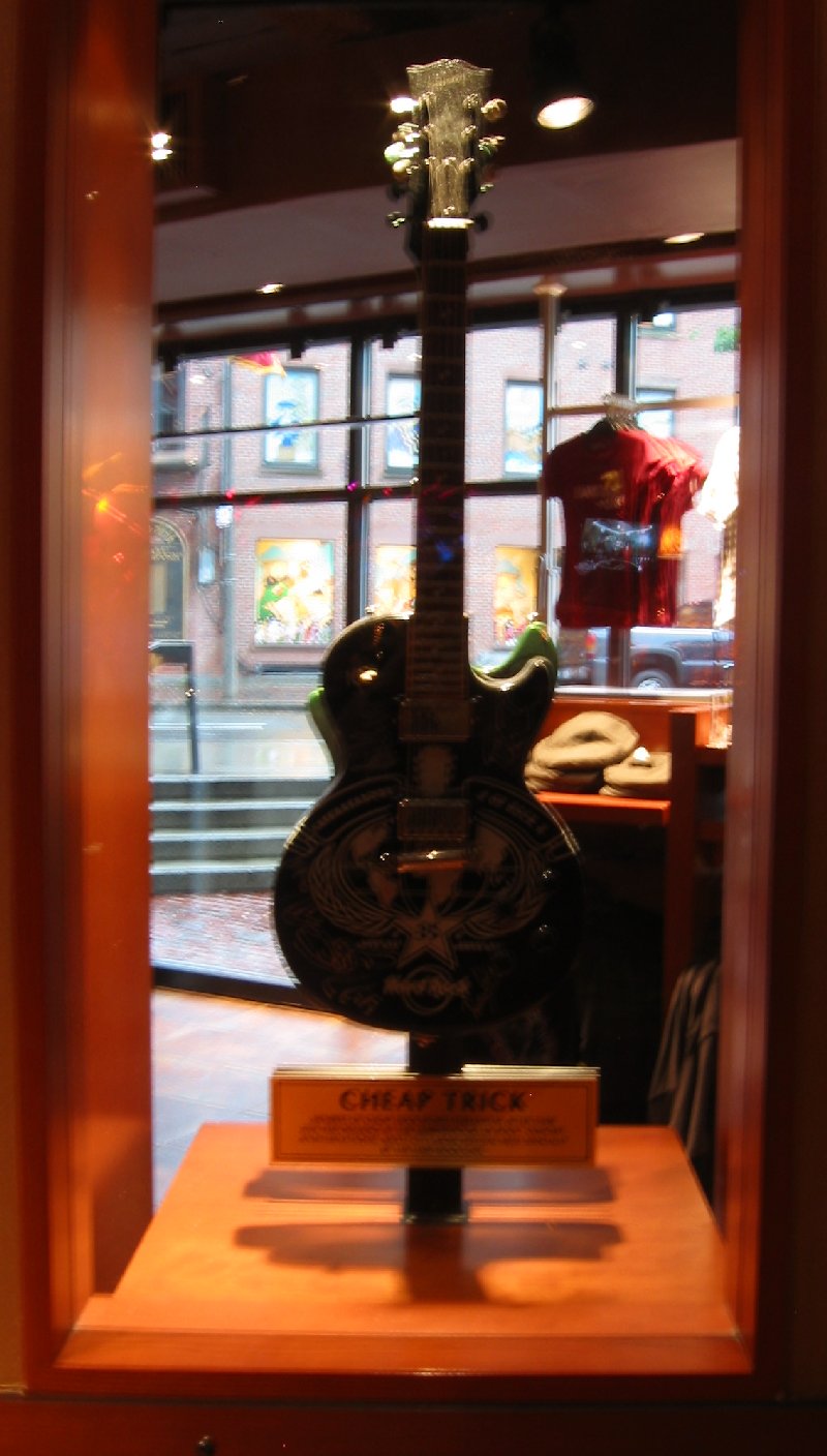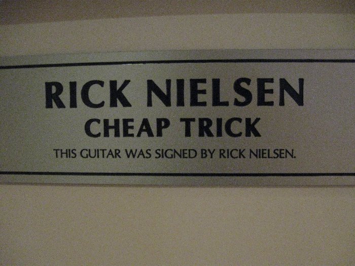 Stockholm, Sweden Good friend, Rick in Sweden tells me that until earlier in the summer of 2003, the HRC in Stockholm had a blue guitar signed by Rick as well as a platinum "At Budokan" award. But they've moved things around and these items are no longer to be seen. Gothenburg, Sweden More good Swedish friends (Lars and Rosie) have informed me that the new HRC in Gothenburg (opened in late 2004) has several Cheap Trick items on display! I don't yet have details, but will add more (and pictures) when I get them. I wonder if some of the items have come from the HRC in Stockholm (see above)? An update from