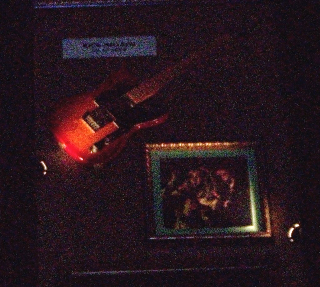 Many thanks to English fan Ian, who spotted these two guitars on a visit in July 2008. The first is Ricks saxophone-design guitar, the second is a band signed HRC "Ambassadors of Rock" guitar. These both link to the bands visit to Japan in October 2006. The sax-guitar was one of several items that the band donated to the HRC chain at a ceremony at the main Tokyo Cafe (see my review { Japan_06 } for more details). In addition, the bands visit to Japan in 2006 was part of that summers HRC "Ambassadors of Rock" series, so I'm sure they'll have signed that guitar in Japan during their short tour. The sax-guitar is also featured on the HRC's new Memorabilia pages - http://memorabilia.hardrock.com/?item=025418 San Diego, CA The first is a blurry shot (sorry) I