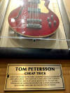The new (as at Oct 2008) HRC Memorabilia website says that this Cafe displays a signed 8 string Rickenbacker 4001 bass of Tom's. Go this link to view this guitar - http://memorabilia.hardrock.com/?item=068310