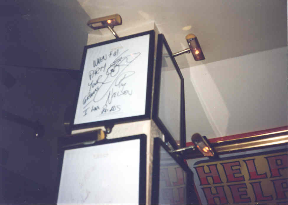 A few more shots, taken in July 2004 including a closeup of the signed Rick- Hamer advertisment, plus a picture from around the mid 90's of Rick and Robin which is high above the pillar and which I hadn't noticed last time I was here. One more shot,