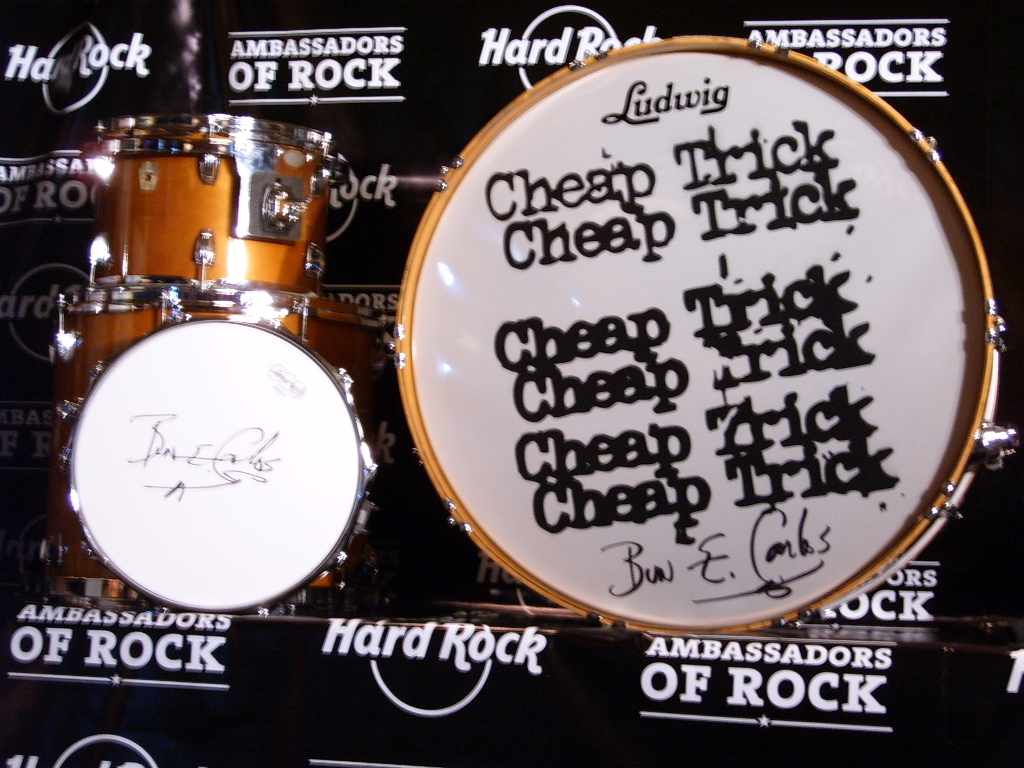 Surrender // (encore) Dream Police, Auf Wiedersehen, Goodnight Now After "If You Want My Love" Rick noted the "world famous Aki", adding that "if you've followed Cheap Trick (in Japan) for more than 20 years you've probably been shouted at by Aki!" He also noted Sushi Man and particularly his toddler aged daughter, "Sushi Baby!" as he called her! After "Come on Come On Come On" Rick held up his Rockford guitar to a cheer from the crowd, pointed to his caricature on the guitar then to himself. Yep, one and the same! Whilst Robin put on his straw hat sidestage, Rick went on "The first thing I did when I got to Japan was get a new guitar! course I got this in Chicago!" The crowd didn't really react, so Rick gave that up and the band went into "Perfect Stranger". It had been nice to hear again, having been in the setlist for only a relatively short time whilst it was the first single release from "Rockford". Hopefully it'll come back into the setlist again sometime. After "Perfect Stranger" Rick asked if this was a Detroit Tigers crowd, then asked "Cheap Trick is good?" "Sorry, I can't hear you". Again, this showed the very Japanese trait of applauding a song loudly and then going very quiet. After "I Want You to Want Me" there was a break whilst Rick played the crowd again. He thanked Mr Udo for "bringing Cheap Trick back to Japan for the 400th time", then thanked the Hard Rock which was celebrating 35 years, and got their chief HRC contact for the tour, a Japanese man called Teddy, onto the stage to say a few words. After Teddy finished, Rick did some press ups! "I don't know what he said, but I don't think it was very good!" joked Rick. He then introduced Tom, saying that "he just gave an interview to Japan's Bass Guitar magazine, so buy 5,000 copies each! Ladies and gentlemen, Mr Tom Petersson!" After the end of "I Know What I Want", the applause died down to silence again, which just felt a little weird each time. Rick noted the good looking audience, also Don Bernstine from the Hard Rock Café ("ugly Gaijin!" Rick joked) and also said hello to Cheap Track, "Tokyo's best Cheap Trick cover band". After "If It Takes a Lifetime" Rick noted a couple more people, before Bun E briefly started the "ELO Kiddies" beat which brought a cheer from the crowd. Then the band started up "The Flame". During the "70's Song" the psychedelic background and logo's were projected, with the double 6x logo during "Surrender". There was checkerboard on the backdrop for the first song of the encore "Dream Police", and a nice, long Tom intro to Auf Wiedersehen. "Goodnight Now" saw the logo on the backdrop and two endings. The show ended at 8.25pm, and whilst this had been a better performance than at the opening Tokyo show, the difference in atmosphere between these large theatre venues and the smaller club venues had been evident. But take nothing away, the band had all performed well tonight. After milling around in the foyer with friends, a group of
