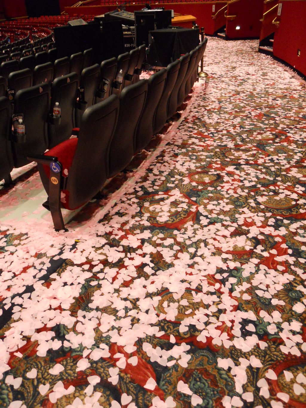 9.38pm, with the theatre carpet covered in pink paper hearts! It had been