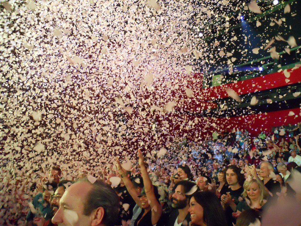 end, air cannons at either side of front stage blew thousands of pink confetti