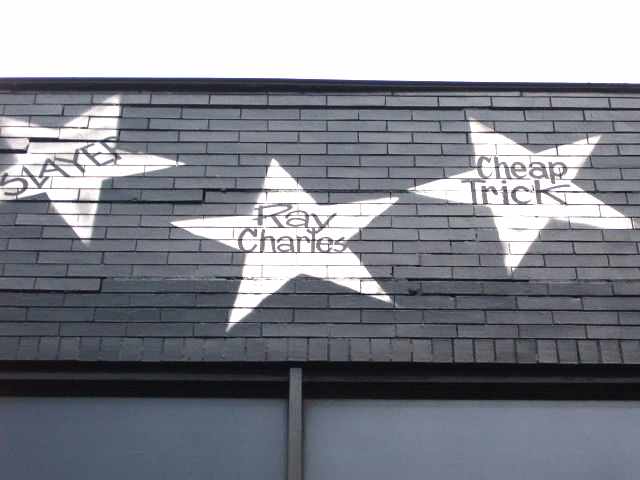 Two nights in Oregon April 2006 Two night stands by Cheap Trick are usually worth making the effort for, wherever they may be. The promise of hearing a number of different songs on night #2 is always an attraction, as is not having to travel between shows! In this case, the two nights on the Oregon coast held other attractions for me too - for one, it was a part of the country I'd not been to before. Having travelled extensively in the US to see shows, visiting new places is always nice and though I'd been through Oregon on I-5, I'd not visited its rugged coastline. In addition, the tour with Aerosmith had recently been abandoned after a number of shows were cancelled by the headliner due to Steven Tylers health, and so these two shows would be amongst Cheap Trick's first for several weeks. There would be a number of friends at the shows to see and catch up with, which is always fun. And last (but by no means least), details of the bands upcoming new CD had been announced only 3-4 weeks before these shows, with 3 new songs being made available on the official website. The first single "Perfect Stranger" had later become available through iTunes etc for download purchase so perhaps a new song or two might be debuted on stage up in the Northwest? Well, one could only hope! Thurs 20 April - Travel, Leeds-Manchester-Amsterdam-Minneapolis-Portland! As usual, my travel day saw me up and out early, with the morning in Leeds still dark and the birds and roads quiet. Actually, I wasn't quite as early as usual, as I mostly seem to catch the 6am flight from Manchester to Amsterdam. However, my itinerary today saw me booked on the 8am KLM flight, so my start from home was just a little later than usual though not by much! I was up at 3am and out before 4.30am! My 8am flight took off half an hour late, but I had plenty of connection time so that was no worry on this occasion. I had some time in a KLM lounge before making my way to the gate. Unfortunately the Northwest flight to Minneapolis was going to be delayed due to the aircraft arriving late, and it was a long wait in the gate area until we could board. The flight finally took off 45 minutes late, but again I had a long layover before my next flight so this wasn't really significant. The 8hr 40m flight was pretty full but not unpleasant, particularly as it was in one of Northwest's new Airbus A330 aircraft which have seatback video on demand. Lots of movies to choose from though none too enthralling. I'm almost ashamed to admit that I fell back on two old favourites - the original "Toy Story" (can't remember when I last saw this) and "Monsters Inc" (yet again). Hey, they helped pass the time and I like 'em! I listened to some MP3's too, and dozed for all of maybe 20 minutes. We landed at Minneapolis/St Paul at 3.10pm local time, and I was quickly through Immigration and was pleasantly surprised not to have to wait long for my yellow bag to arrive on the baggage carousel. With that safely checked back onto my next flight, I had over 5 hours to kill which sucked except it was the best priced flight itinerary I could get. Anyway, it wasn't too much of a bust as I'd heard that a rail link had recently opened connecting downtown Minneapolis with the airport and Mall of America. So I'd already pre-planned to take the light railway north into downtown, the ride only taking about 30 minutes for just $2. It was overcast in Minneapolis as I walked from Hennepin/5th to the nearby Hard Rock Café. I'm afraid this was one of those disappointing Café's a bit like Phoenix. Some are pretty cool to go into and look around, but I really didn't get much of a buzz here. However, it did have one of Rick's Hamer guitars on the wall, and in the upstairs entrance "foyer" it had an impressive glass wall display of items owned, played or written by one of the cities major musical sons, Prince. Anyway, I took a couple of photo's of Rick's guitar (see pix at hardrock.htm) and did a little shopping, before heading outside. On the opposite street corner was one of Minneapolis's legendary musical venues, "1st Avenue". A huge number of big names have played here, including Cheap Trick, and on both of the two long outside walls on either side of the corner entrance, were painted hundreds of silver stars on the black walls. These were a "Wall of Fame" of the artists who had played here, and of course I had to find Cheap Trick's star! That proved to be high up on the wall on the 1st Avenue side.
