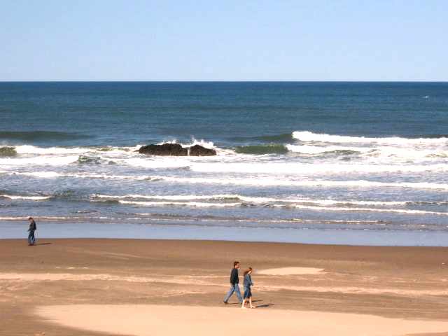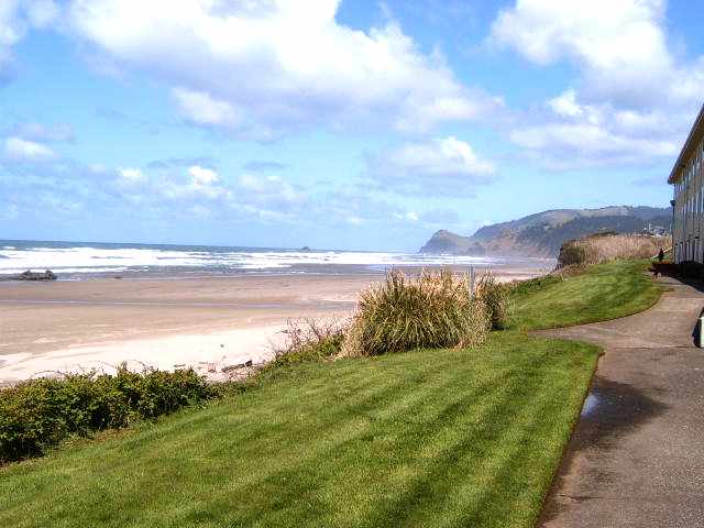 It soon started to rain, and so I abandoned any further exploration downtown. And to be honest, downtown Minneapolis wasn't all that inspiring from what I saw. The only thing I might have liked to do was revisit the Metrodome to see the Twins play some baseball, but their home game was later tonight and not in the afternoon. So instead I rode back to the airport in the rain and killed time in a Northwest lounge before finally going to the gate for my last flight of a very long day. By now I was pretty tired, and the 9.25pm flight (local time) was over 24 hours after I'd woken up this morning. We took off 30 minutes late (seemingly a pattern for the day), and though I was upgraded into First Class, it was too late a flight for Northwest to serve a meal. So the food service was from a choice of small packets of snacks and cookies. Later during the 3 hour flight I walked down the cabin to stretch my tired legs and saw two of CT's crew (Bill and Larry) dozing in their seats! Always nice to see familiar faces. We landed at dry but dark Portland (Oregon) at 11pm local time, and after such a long travelling day I was very happy to see Californian friend Tricktoria arrive at the downstairs baggage claim just as I did. As ever on the West Coast, she'd been kind enough to offer me a seat in her car and hotel room share. Anyway, we waited for the luggage to arrive, though oddly before anything showed up on the never-ending rubber loop, I saw an airline guy pushing a cart with my yellow bag! So I rushed after him, and thankfully he was delivering it to the nearby luggage supervisor seems it had come in on the previous flight from Minneapolis! So, we left Bill, Larry and the other passengers waiting for their bags, and Victoria and I headed out. After a marathon travelling day I'd thought I'd be too tired to go far, so we'd booked a hotel close to Portland. We drove there and checked in somewhere around midnight. However, I hadn't eaten a meal for some hours, and Victoria hadn't eaten much on her long drive up from California. The receptionist told us about two nearby 24 hr places, a Denny's and a Shari's. I plumped for Shari's only on the basis of never having eaten in one (whilst almost every American and quite a few tourists, including me, have eaten in a Denny's right?) So we followed the directions to Shari's, it was about 3 times as far away as was Denny's <sigh>. Foodwise it was so-so, but it was hot and it was food so it worked kinda! Back to the hotel and quickly to bed. It was 1.30am here, and 9.30am Friday morning at home, over 30 hours since I had got up this morning zzzzzzzzzzzzz!! Fri 21 April - Cheap Trick in Lincoln City, night #1 The morning was bright and dry, and I had to pinch myself to check I was awake. Pacific Northwest? And not raining? :-) Well, no complaints about the weather, though it wasn't actually too warm. We headed out of Beaverton and south west towards the Oregon Coast. The drive wasn't unpleasant, and en-route we passed through Oregon's equivalent of the Napa Valley, sort of. Well, there was a stretch where a number of local vineyards were advertised and signposted, and I honestly never knew you could get Oregon wine. Mind you, there are a few small vineyards back home in Yorkshire too, so I guess nothing should surprise me! We reached the Chinook Winds Casino and Resort Hotel around 1pm and checked into a ground floor room. The weekend cost seemed somewhat excessive when you considered the basic motel type room, but the bonus was that on the ground floor you had a rear as well as front door and the back door opened onto a path just above the long sandy beach and the Pacific Ocean. The view was spectacular, and made the cost worthwhile I think. After having lunch in the Hotel restaurant (again with ocean view), we went up to check out the casino and venue.