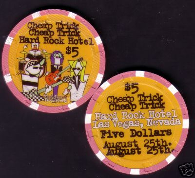 - Hard Rock Casino $5 gambling chip, with graphic from