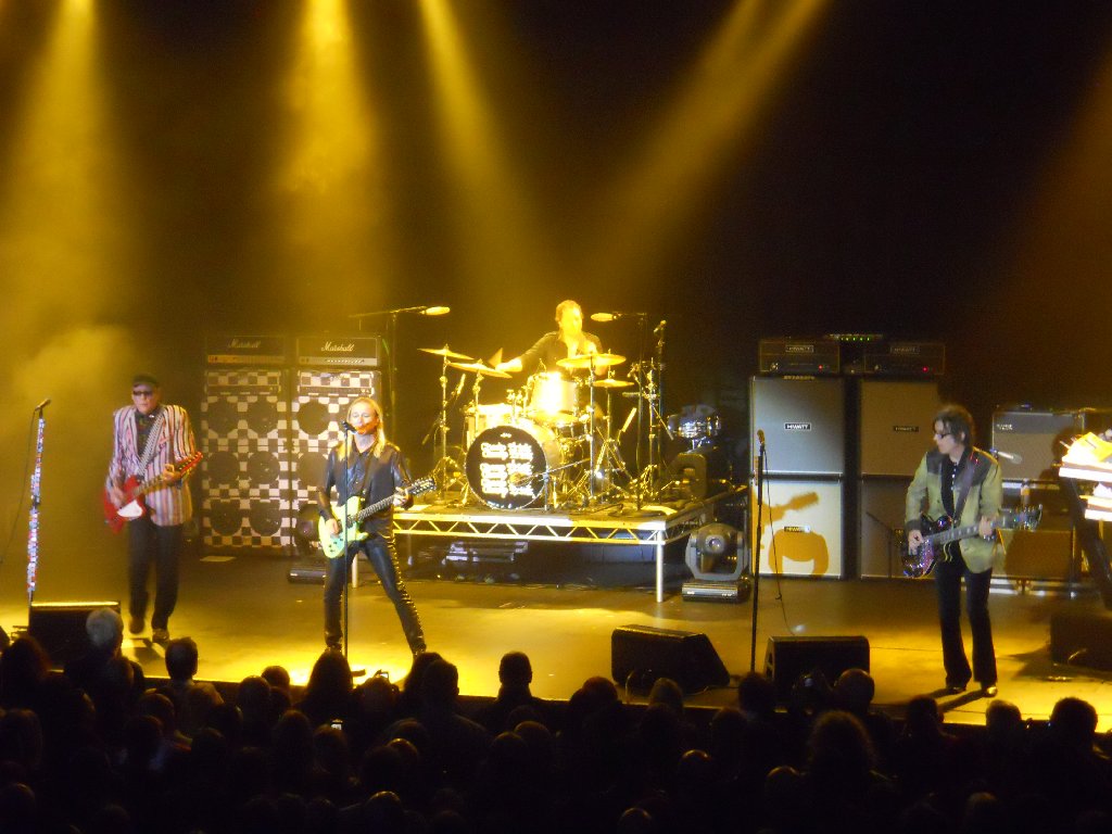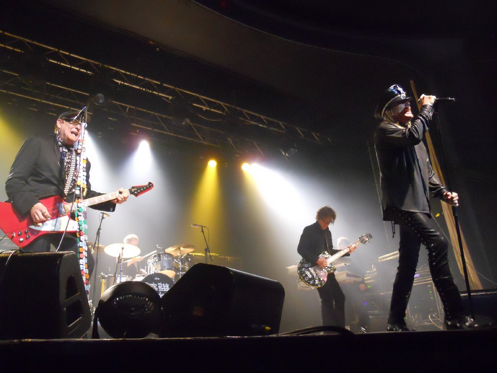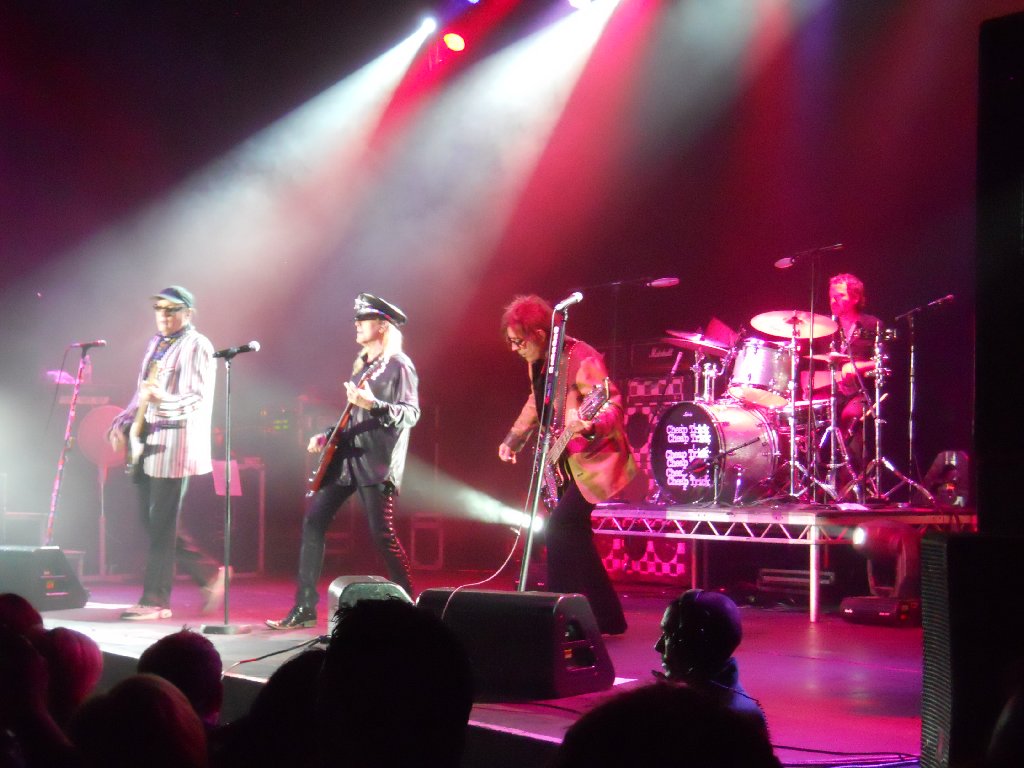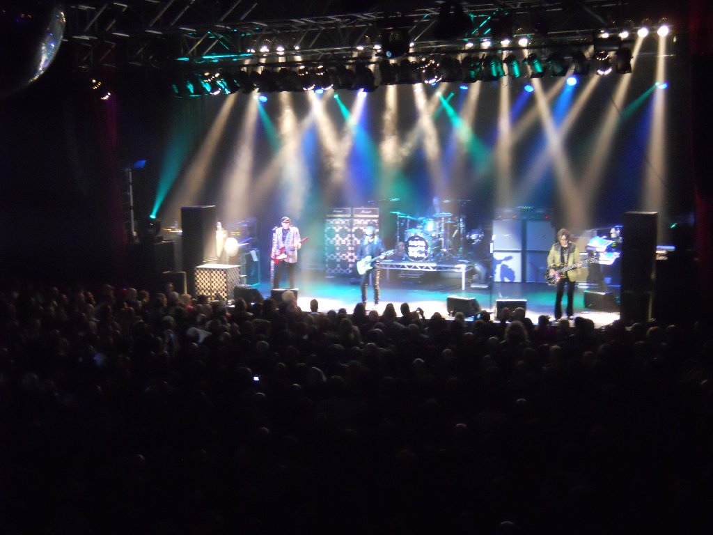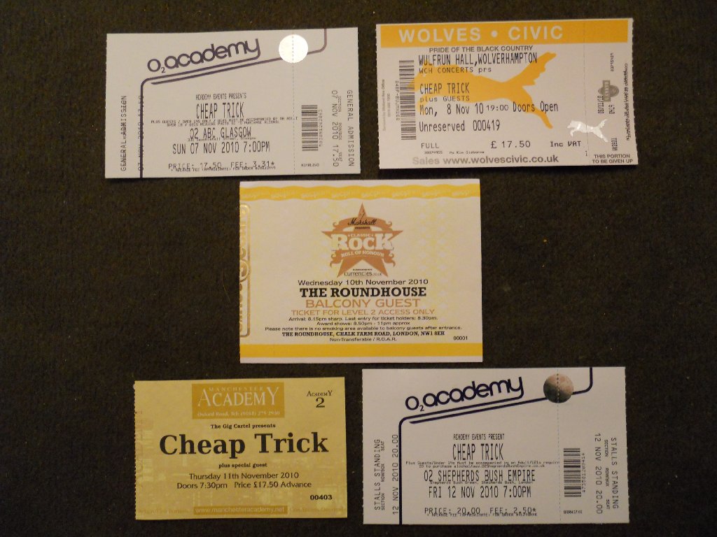 black suit, black shirt with white Beatles logos, bow tie Just Got Back, California Man, Lights Out, IWYTWM, These Days, Borderline, Looking Out For Number One, I Wish You Would, On Top of the World, Don’t Be Cruel, House is Rockin’, 70’s Song, Ballad of TV Violence, Baby Loves to Rock, Sick Man of Europe, Closer, Surrender // (encore) Downed, Dream Police, Clock Strikes Ten, Goodnight Now From the start it was obvious that we’d be getting a quite different setlist from last night in Glasgow. The show started with the pulsating “Just Got Back”, followed by “California Man”. That was followed up, very appropriately given where we were, by Slade cover “Lights Out”, and then “I Want You to Want Me”. Wow, the crowd needed a breather after that start, and so I suspect did the band. Rick seemed a little better than last night though was still struggling with his cold. After “IWYTWM” he addressed the crowd “Thank you very much, it’s great to be here. Hope you didn’t mind our version of that Slade song… we hoped Noddy would be here but… fuck him! We’re glad YOU’RE here! We have our new album out on Wednesday in Classic Rock… we actually have 28 albums… here’s one from the Latest”. The band went into “These Days”. That was followed by two live rarities, “Borderline” and “Looking Out for Number One”, both of which were pleasing to hear. By this point I was already starting to think ahead and wonder what they’d pull out in Manchester and London. After “…Number One”, Rick announced “We’re doing the Classic Rock music awards on Wednesday. It’s quite an honour, they brought us over. We were asked to learn a Yardbirds song, so with your blessing…” and the band went into another great performance of “I Wish You Would”. Next up was “On Top of the World”. Rick again addressed the crowd, and started to talk to them without the mic, which may have made it difficult for those at the very back to hear. He introduced the band, first Robin, then Magic Cristian – “It’s his first trip over here, so if you have anything bogus to sell him…!” That was followed by Daxx, then “… Tom Petersson on the 12 string bass guitar” and last but not least, “… my favourite lead singer in the whole wide world, Mr Robin Zander”. He then asked “Why are we the only band in the world to have a Top 5 with an Elvis Presley song? ‘Cos they’re fucking hard to do! The band naturally went into “Don’t Be Cruel”. After that Rick asked “Do you want to hear a song that really rocks?”, and starting up the glorious “House is Rockin”. That one hasn’t been heard live in a while either. That was followed by his usual intro, “Every time you watch That 70’s Show, that’s Cheap Trick doing That 70’s Song” and the band playing the very same song. Afterwards Rick noted “I guess you’ve never seen that fucking show? Anyway, It’s an honour to be in England, after 40 years of stealing ideas from you!” That was followed by that pleasant little ditty, “The Ballad of TV Violence”, then “Baby Loves to Rock”, “Sick Man of Europe”, “Closer: The Ballad of Burt & Linda” and then “Surrender”. The audience were cheering and calling for more as Robin thanked the crowd, adding “Thanks for coming out to see Cheap Trick tonight, we appreciate you all”. Rick soon came back on to ask “Does that mean you want to hear some more?” He got a big roar of “YES!!” in return. “Are you SURE you want to hear some more?” Again the big “YES!!” response. “Thank you very much , you’re a great crowd”. The band started the encore with “Downed”, followed by “Dream Police”, “Clock Strikes Ten” and an energetic “Goodnight Now” with 4 endings. The show ended at 10:01pm, with another very happy crowd who’d witnessed a great show and a great setlist. As usual, the few minutes afterwards were spent chatting in the venue. I’d invited some of my family to come and see the band that had been so much of my life these past 30+ years, and I think they were impressed! Spoke to other fans too, and everyone had enjoyed the show. A few of us went back to the nearby Yates’ bar to have a drink and celebrate Lisa N’s birthday. Pat & I got back to our hotel about midnight. More work with tonight’s show photo’s before bed. Tuesday 9 Nov Today was the non-show day of the tour, but that didn’t mean it wasn’t busy! After breakfast at the hotel, we left Wolverhampton at 8:50am and drove the 132 miles in the rain up to Leeds, arriving at 11:10am. Had an hour and a half at home, unpacking and then re-packing, before getting a bus into Leeds centre and an early afternoon train down to London. Then caught a tube to near our hotel, dinner, and catching up later that evening with a couple of friends. It was chilly but dry in London. Wednesday 10 Nov – Cheap Trick in London (Classic Rock Awards) The morning was bright but very chilly, brrr! Pat & I did a long walk from 9:45am through to about 4:30pm. Changed at the hotel, and then caught the tube up to Chalk Farm, and the nearby “Roundhouse”, the venue for tonight’s “Classic Rock Awards”. We met up with Mike & his girlfriend in the bar next door (definitely warmer than standing outside!), and through the large windows to both the outside and inside to the Roundhouse lobby, we watched a few celebs arrive. Pat & I had missed Rick, Robin & Tom arrive, also a few others, but we did see Slash, Geddy Lee and Ronnie Wood arrive and brave the mob of photographers. Guests were finally allowed in at 8:35pm, more or less after the celebs and industry suits had finished their meals on the main floor of the venue. We were escorted up to the balcony, half of which was closed off. There were 5 rows of seating and only about 75 guests allowed up there. We were lucky enough to get in the front row with a near straight-on view of the stage. The venue was, 