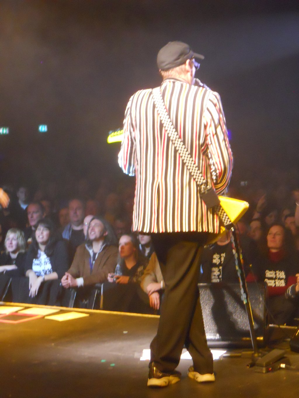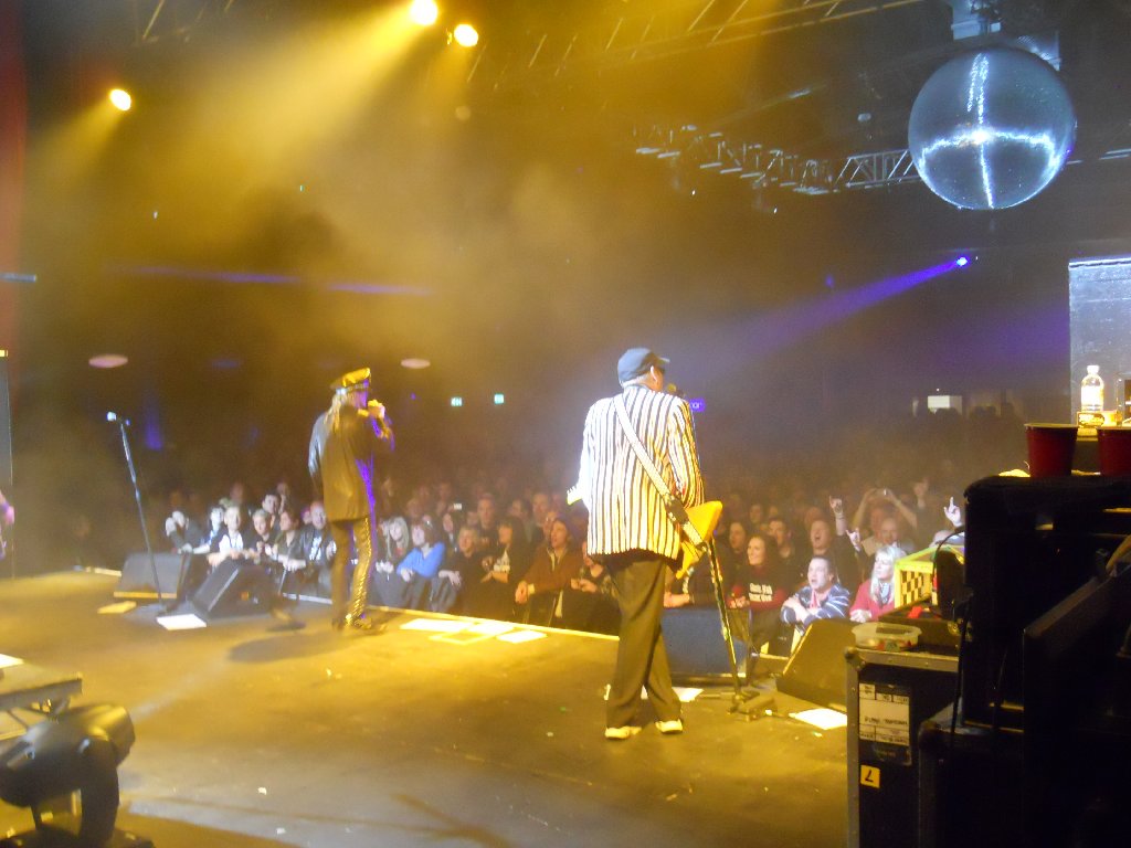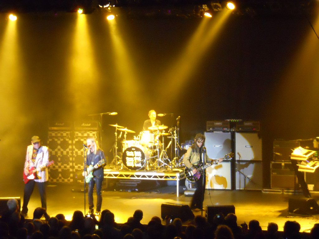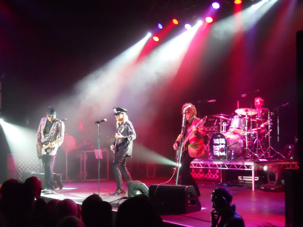 black suit, black shirt with white Beatles logos, bow tie Just Got Back, California Man, Lights Out, IWYTWM, These Days, Borderline, Looking Out For Number One, I Wish You Would, On Top of the World, Don’t Be Cruel, House is Rockin’, 70’s Song, Ballad of TV Violence, Baby Loves to Rock, Sick Man of Europe, Closer, Surrender // (encore) Downed, Dream Police, Clock Strikes Ten, Goodnight Now From the start it was obvious that we’d be getting a quite different setlist from last night in Glasgow. The show started with the pulsating “Just Got Back”, followed by “California Man”. That was followed up, very appropriately given where we were, by Slade cover “Lights Out”, and then “I Want You to Want Me”. Wow, the crowd needed a breather after that start, and so I suspect did the band. Rick seemed a little better than last night though was still struggling with his cold. After “IWYTWM” he addressed the crowd “Thank you very much, it’s great to be here. Hope you didn’t mind our version of that Slade song… we hoped Noddy would be here but… fuck him! We’re glad YOU’RE here! We have our new album out on Wednesday in Classic Rock… we actually have 28 albums… here’s one from the Latest”. The band went into “These Days”. That was followed by two live rarities, “Borderline” and “Looking Out for Number One”, both of which were pleasing to hear. By this point I was already starting to think ahead and wonder what they’d pull out in Manchester and London. After “…Number One”, Rick announced “We’re doing the Classic Rock music awards on Wednesday. It’s quite an honour, they brought us over. We were asked to learn a Yardbirds song, so with your blessing…” and the band went into another great performance of “I Wish You Would”. Next up was “On Top of the World”. Rick again addressed the crowd, and started to talk to them without the mic, which may have made it difficult for those at the very back to hear. He introduced the band, first Robin, then Magic Cristian – “It’s his first trip over here, so if you have anything bogus to sell him…!” That was followed by Daxx, then “… Tom Petersson on the 12 string bass guitar” and last but not least, “… my favourite lead singer in the whole wide world, Mr Robin Zander”. He then asked “Why are we the only band in the world to have a Top 5 with an Elvis Presley song? ‘Cos they’re fucking hard to do! The band naturally went into “Don’t Be Cruel”. After that Rick asked “Do you want to hear a song that really rocks?”, and starting up the glorious “House is Rockin”. That one hasn’t been heard live in a while either. That was followed by his usual intro, “Every time you watch That 70’s Show, that’s Cheap Trick doing That 70’s Song” and the band playing the very same song. Afterwards Rick noted “I guess you’ve never seen that fucking show? Anyway, It’s an honour to be in England, after 40 years of stealing ideas from you!” That was followed by that pleasant little ditty, “The Ballad of TV Violence”, then “Baby Loves to Rock”, “Sick Man of Europe”, “Closer: The Ballad of Burt & Linda” and then “Surrender”. The audience were cheering and calling for more as Robin thanked the crowd, adding “Thanks for coming out to see Cheap Trick tonight, we appreciate you all”. Rick soon came back on to ask “Does that mean you want to hear some more?” He got a big roar of “YES!!” in return. “Are you SURE you want to hear some more?” Again the big “YES!!” response. “Thank you very much , you’re a great crowd”. The band started the encore with “Downed”, followed by “Dream Police”, “Clock Strikes Ten” and an energetic “Goodnight Now” with 4 endings. The show ended at 10:01pm, with another very happy crowd who’d witnessed a great show and a great setlist. As usual, the few minutes afterwards were spent chatting in the venue. I’d invited some of my family to come and see the band that had been so much of my life these past 30+ years, and I think they were impressed! Spoke to other fans too, and everyone had enjoyed the show. A few of us went back to the nearby Yates’ bar to have a drink and celebrate Lisa N’s birthday. Pat & I got back to our hotel about midnight. More work with tonight’s show photo’s before bed. Tuesday 9 Nov Today was the non-show day of the tour, but that didn’t mean it wasn’t busy! After breakfast at the hotel, we left Wolverhampton at 8:50am and drove the 132 miles in the rain up to Leeds, arriving at 11:10am. Had an hour and a half at home, unpacking and then re-packing, before getting a bus into Leeds centre and an early afternoon train down to London. Then caught a tube to near our hotel, dinner, and catching up later that evening with a couple of friends. It was chilly but dry in London. Wednesday 10 Nov – Cheap Trick in London (Classic Rock Awards) The morning was bright but very chilly, brrr! Pat & I did a long walk from 9:45am through to about 4:30pm. Changed at the hotel, and then caught the tube up to Chalk Farm, and the nearby “Roundhouse”, the venue for tonight’s “Classic Rock Awards”. We met up with Mike & his girlfriend in the bar next door (definitely warmer than standing outside!), and through the large windows to both the outside and inside to the Roundhouse lobby, we watched a few celebs arrive. Pat & I had missed Rick, Robin & Tom arrive, also a few others, but we did see Slash, Geddy Lee and Ronnie Wood arrive and brave the mob of photographers. Guests were finally allowed in at 8:35pm, more or less after the celebs and industry suits had finished their meals on the main floor of the venue. We were escorted up to the balcony, half of which was closed off. There were 5 rows of seating and only about 75 guests allowed up there. We were lucky enough to get in the front row with a near straight-on view of the stage. The venue was, 