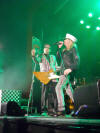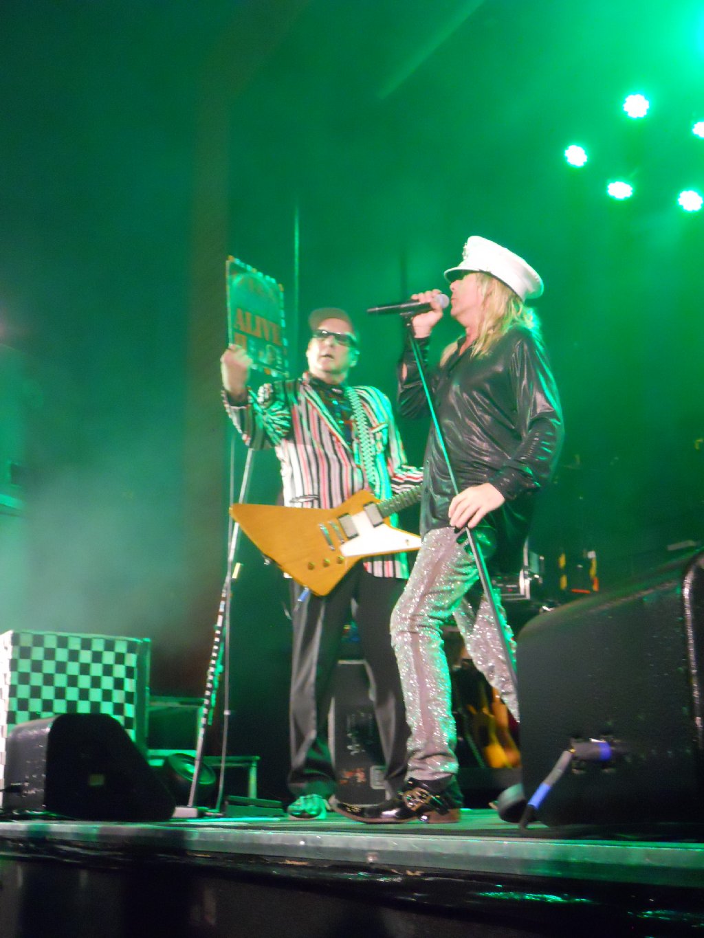 black pants Hello There, Come On Come On, ELO Kiddies, High Roller, Cry Cry, IWYTWM, These Days (with accordion), Didn’t Know I Had It, I Can’t Take It, I Wish You Would, Miss Tomorrow (with accordion), Miracle, Southern Girls, Worlds Greatest Lover, Sick Man of Europe, Closer, Surrender // (encore) Need Your Love, Dream Police, Goodnight Now The band started off with three classic songs – “Hello There”, “Come On Come On” and “ELO Kiddies”, each enthusiastically greeted by the large and enthusiastic Glasgow crowd. Rick was still nursing the bad cold/chest infection that he’d had when I saw the band the previous weekend in Michigan, but he wasn’t letting that stop him give his all. As usual he commanded the stage, flicking picks and goofing around, whilst delivering killer guitar chords. Early on it was clearly evident that the rest of the band was equally pleased to be playing back in the UK, and Glasgow in particular. Robin gave a masterclass in the art of singing, whilst Tom was rock solid on bass. The three original band members were very ably supported by Daxx Nielsen on drums (replacing the currently non-touring Bun E) and Magic Cristian on keyboards and backing vocals. There was a short pause after “ELO Kiddies” when Rick said “So far so good”. The band then went into “High Roller”. The next song saw a false start before the band launched into a wonderful “Cry Cry”, a first album song that is rarely played live. That featured a long ending too which was pretty cool to hear. “I Want You to Want Me” was the perennial crowd favourite, with a huge reaction and singalong by the crowd. I think they liked it. After that, Rick addressed the crowd “Yeah! Thank you very much! It’s wonderful to be back in Glasgow… I caught some of that flu down south – good news for you!” Pointing out the accordion player who’d come onto Tom’s side of the stage, he continued “We found this guy, Mick MacNeil, he’s more rehearsed than we are! This is our first show of the tour in the UK… I’ve been informed it’s been too long since we were last here and I fucking agree! We’re going to do some old stuff, new stuff, in-between stuff… party on!” The band then launched into “These Days”, complete with accordion. Afterwards Rick announced that the song was from the recent “The Latest” CD, adding that the CD would be available free with the upcoming issue of “Classic Rock”. He continued that the album was on CD and 8-track, noting that “the 8-track has been the number 1 selling 8-track in the world for the last 7 months! It can be bought from our merch table, and please, no fighting for the last copy!” The set continued with “Didn’t Know I Had It”, again a bit of a rarity in the setlist. That was followed up by the jaunty “I Can’t Take It”. After that, Rick again addressed the crowd, despite the effects of his cold. He mentioned the band was doing 4 shows in the UK, then a show at the Classic Rock awards in London with Alice Cooper. “Is he scary?” The band then played the Yardbirds cover “I Wish You Would”. This had debuted the previous weekend in Harris, Michigan, though tonight there was far less “You’re All Talk” in it than I’d heard last weekend. This version was equally as cool to hear, and the Yardbirds were certainly a big influence on the band members when they were starting out. Afterwards Rick confirmed ”That was our interpretation of a Yardbirds song”. He continued by introducing Magic, Daxx, then “… the inventor of the 12 strong bass guitar, Mr Tom Petersson”, followed by “… my favourite lead singer in the whole wide world Mr Robin Zander”. He continued “Every mistake we make is real… we’re not like U2 with 20 guys under the stage and 4 on top! … Did I just say that?” That brought a big laugh. The band then went into “Miss Tomorrow”, again with Mick MacNeil on accordion and an interesting Irish/Scottish reel mid-song! Afterwards Rick noted people “… from Deutschland… France… Dublin? Is that in Illinois? … Australia… Italy… New Zealand… and believe it or not, some people from GLASGOW!!” That of course brought a big cheer from the majority of the crowd. He continued “Remember, I don’t feel so good, so any sympathy…” to which the crowd gave him the sympathetic “Awwwww” that he sought! The band continued this fine set with “Miracle”, followed by “Southern Girls” which hasn’t had an airing in quite some time. That was followed by a wonderful “Worlds Greatest Lover”, another live rarity, with all vocals done by Robin. This song has been part of this summers “Sgt Pepper Live” show at the Paris Casino in Las Vegas, so it’s not like they haven’t played it live recently. However, at Cheap Trick shows, I don’t think it’s been played more than a handful of times (if that) since the Silver show in 1999. “Sick Man of Europe” followed, very apropos with Rick feeling pretty crappy, but you wouldn’t guess from his playing. As ever, Tom’s quicksilver bass playing was amazing to witness. “Closer: The Ballad of Burt & Linda” was next, and for me is becoming a highlight. This Beatles-esque song highlights both Robin’s vocals and Rick’s guitar, and is just great. The main set closed with the quintessential CT song, “Surrender”, though mildly alarming to see Rick struggling with his coughing when facing rear stage. The man was a trouper, totally. Meanwhile, the crowd loved it, and at the end Robin said “Thank you for coming out to see Cheap Trick tonight, hope to see you down the road apiece”. Rick soon came back on to a big cheer, and said “Thank you… I feel sick and don’t want to play any more… but fuck it, I AM!!” The band then went into a monster “Need Your Love”, followed by “Dream Police” and “Goodnight Now” – which featured a long intro as Rick’s guitar wasn’t on at the st