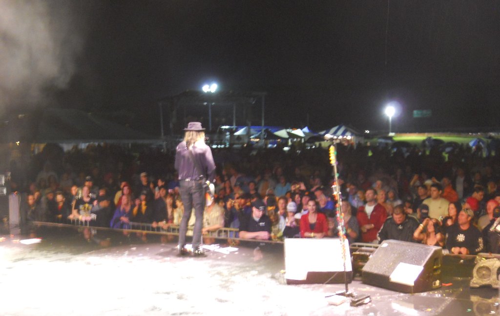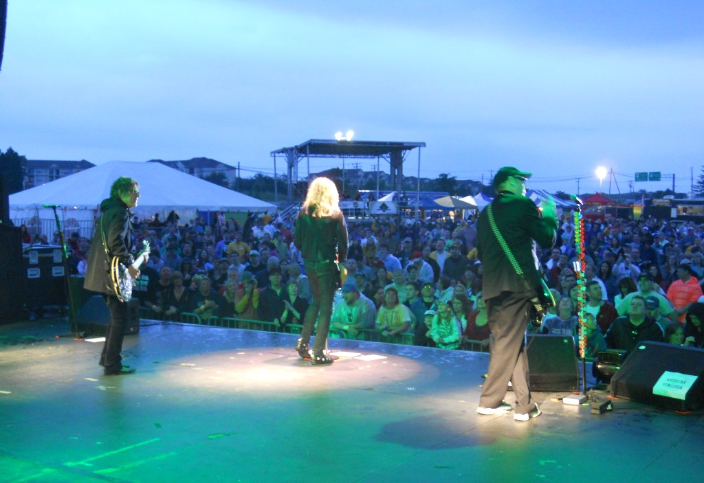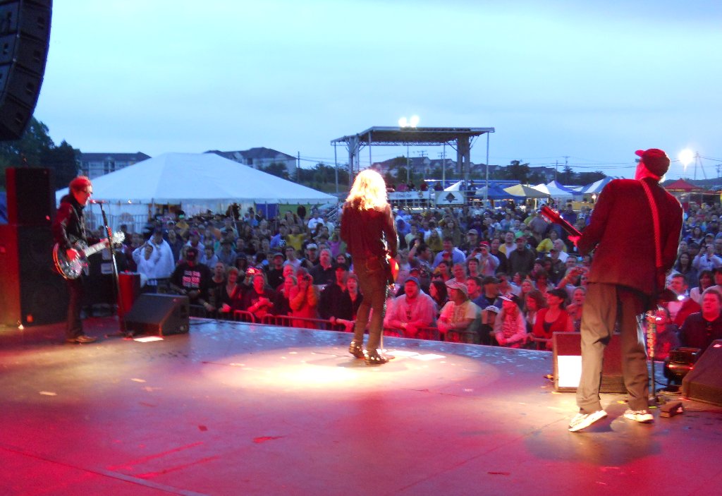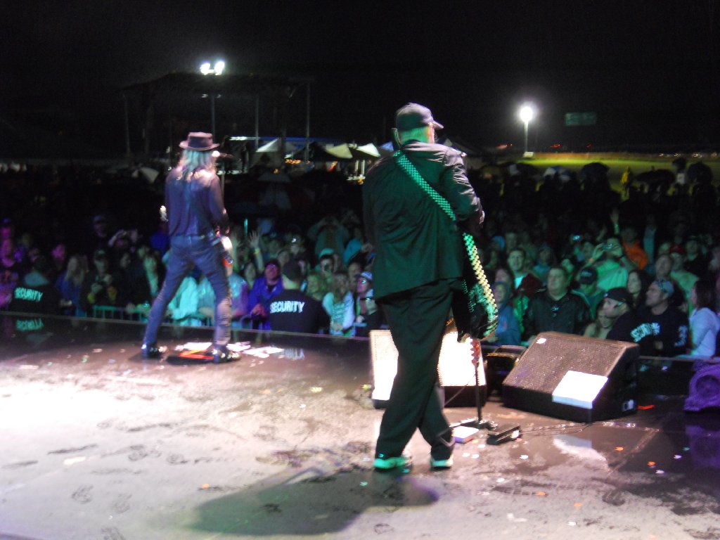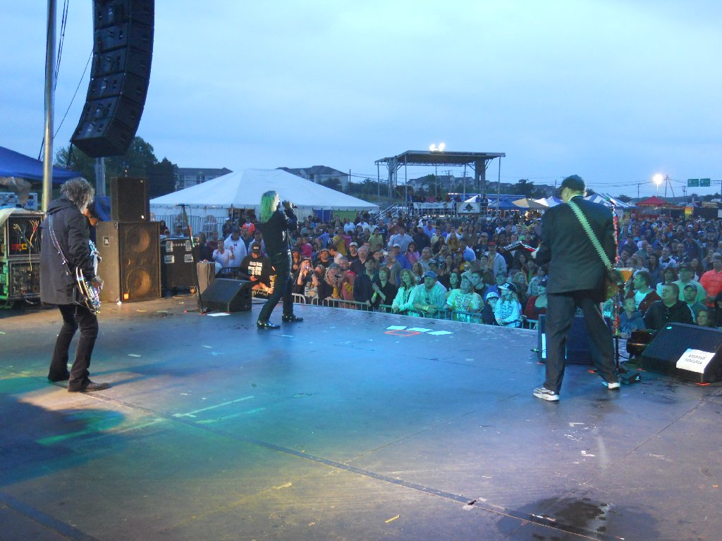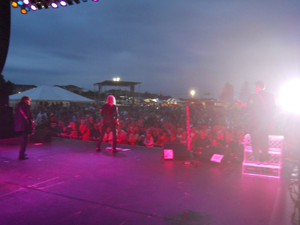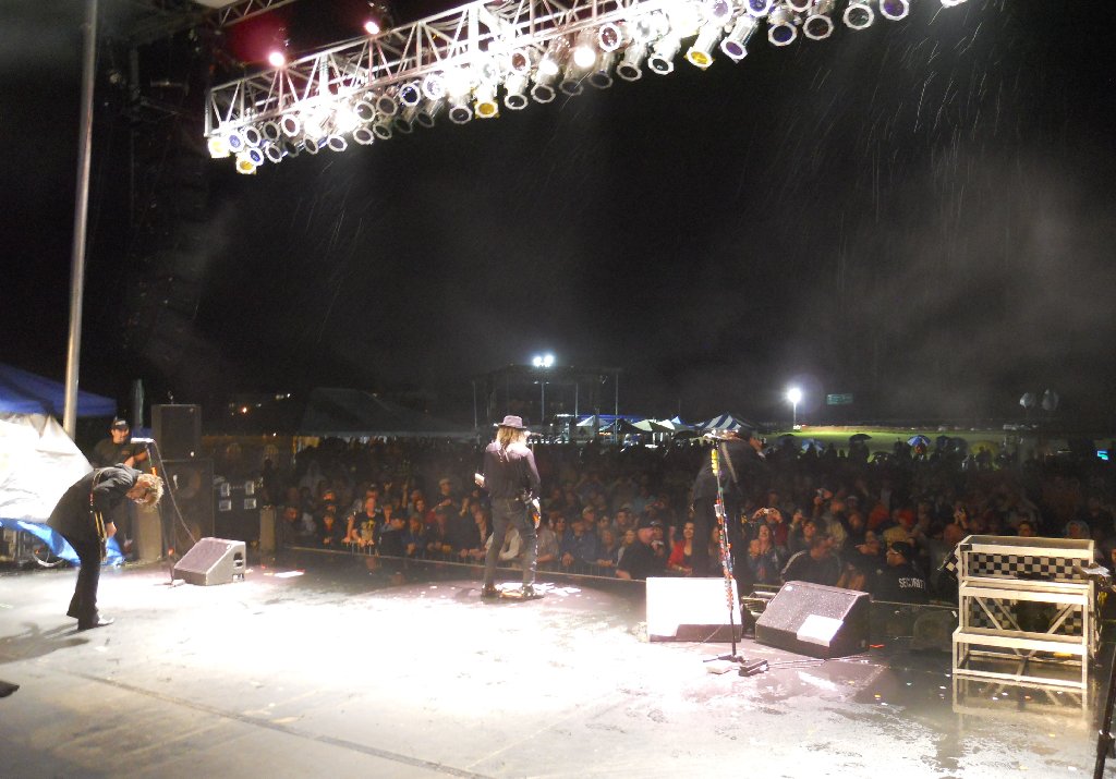 white patterned shirt, bow tie Way of the World, Come On Come On, (RN guitar solo intro to…) California Man, Miracle, I Want You to Want Me, These Days, Baby Loves to Rock, Heaven Tonight, On Top of the World, 70’s Song, Need Your Love, Miss Tomorrow, (RN guitar solo intro to…) Ballad of TV Violence, Sick Man of Europe, Closer (The Ballad of Burt & Linda), The Flame, Surrender // (encore) Dream Police, Auf Wiedersehen, Goodnight Now (with 3 endings) It was a lovely, warm evening, very pleasant for an outdoor show, though as the evening progressed and the sky darkened, more insects were attracted by the stage lights! The show started with three songs in a row, and after “California Man” Rick reminded the crowd that “Just in case you’re not sure, we are the one, the only, accept no substitutes Cheap Trick!” He also asked “Is everyone alright tonight?” before the band went into “Miracle” and the usual crowd pleasing “IWYTWM”. After that, Rick asked “Did I mention we’re called Cheap Trick?”, just in case no-one had realised by now! He also commented on the “fine looking crowd”, and the new album “The Latest”. After “These Days”, Rick did a little solo including a bit of the “Taxman” riff before going into an energetic “Baby Loves to Rock”. The band was in fine form, and the crowd was enjoying the show on a lovely evening. After some spiel from Rick about Tom’s birthday party I think – “Tom lives in Nashville, so his party was attended by the stars… like Trisha Yearwood’s guitar tech!” - he introduced the band members, and then introduced the next song as being from the “Heaven Tonight” album. The band went into a wonderful version of the title song. “On Top of the World” had a long intro, I think Robin may have missed a cue to start though no harm done. That was followed by “That 70’s Song” and a stunning “Need Your Love” (first time I’ve heard this one in a few years). Afterwards, Rick remarked “Thank you. “Live at Budokan” is over 30 years old…we did it when we were two! And thank you for making “The Latest” the number 1 selling 8-track in the world!” The set continued with “Miss Tomorrow”. Rick then did a solo guitar intro, including the “Oh Boy” riff, into the “Ballad of TV Violence”. That’s always intense, and afterwards Rick noted “A nice little ballad!” That was followed by “Sick Man of Europe”, with Robin performing vocal gymnastics and Tom performing wonders in his peacock bass. The song may be short, but it’s certainly a cool 2.5 minutes. Next was “Closer: The Ballad of Burt & Linda” which to my mind is becoming a monster in the setlist, with its wonderful extended ending, Rick’s slide guitar solo etc. The main set finished with two crowd pleasers, “The Flame” followed by “Surrender”. Before leaving the stage, Robin thanked the crowd “Thank you very much, we’re Cheap Trick. Thanks for hanging out with us, we’ll see you down the road apiece, goodnight”. A couple of minutes later, Rick was first to return to the stage, asking the crowd “Does that mean you want to hear some more?” (answered with a very loud YES!!) then twice asking “Are you SURE you want to hear some more?” Yes, the crowd was sure, and so the encore began. It started with “Dream Police”. Tom then did a brief solo including a bit of “Within You Without You” before starting up the wonderful “Auf Wiedersehen”, which segued right into “Goodnight Now” with 3 endings. The show ended at 9.44pm, and a very nice show it had been on a pleasant and warm evening. I hung around for a short while to talk with various fan friends before heading out. I was driving back up to my Dulles airport hotel, to round off a very long and busy day. Luckily the roads were quieter at 10pm than they had been just a few hours earlier, and I got back to my hotel at 11.40pm. It was a pleasure to fall into bed after a hectic 25 hour travelling day. Saturday 22 May - CT in Ashburn, VA The morning was overcast, and I did a little shopping during the day before heading from the hotel around 3.10pm to find the Loudon/Ashburn venue a little north of Washington Dulles Airport. It was a little confusing to find, but I eventually found the field near the Country Club at 3.40pm. Amazingly, I wasn’t the first there, about a dozen or so people were parked and sitting in their cars. It was spitting rain when I arrived and parked, and had become harder by 4.30pm :-( Harder and persistent. People were allowed in at 5pm, with the first opening band on at 6pm and they played in the persistent rain. The stage was pretty much a large field, with a reserved area of uncovered seating in front for those who’d purchased VIP tickets. Far more important today though were umbrellas and rain jackets, and I must admit to fearing for the show as the rain continued. The gusting breeze blew water onto the stage, and well, it didn’t look good. The second opening band went on at 6.48pm and played to 7.30pm. Thankfully the rain eased up as they finished their set, giving the techs a chance to dry the front of the stage. CT came on at 8.16pm RN- black suit, plain