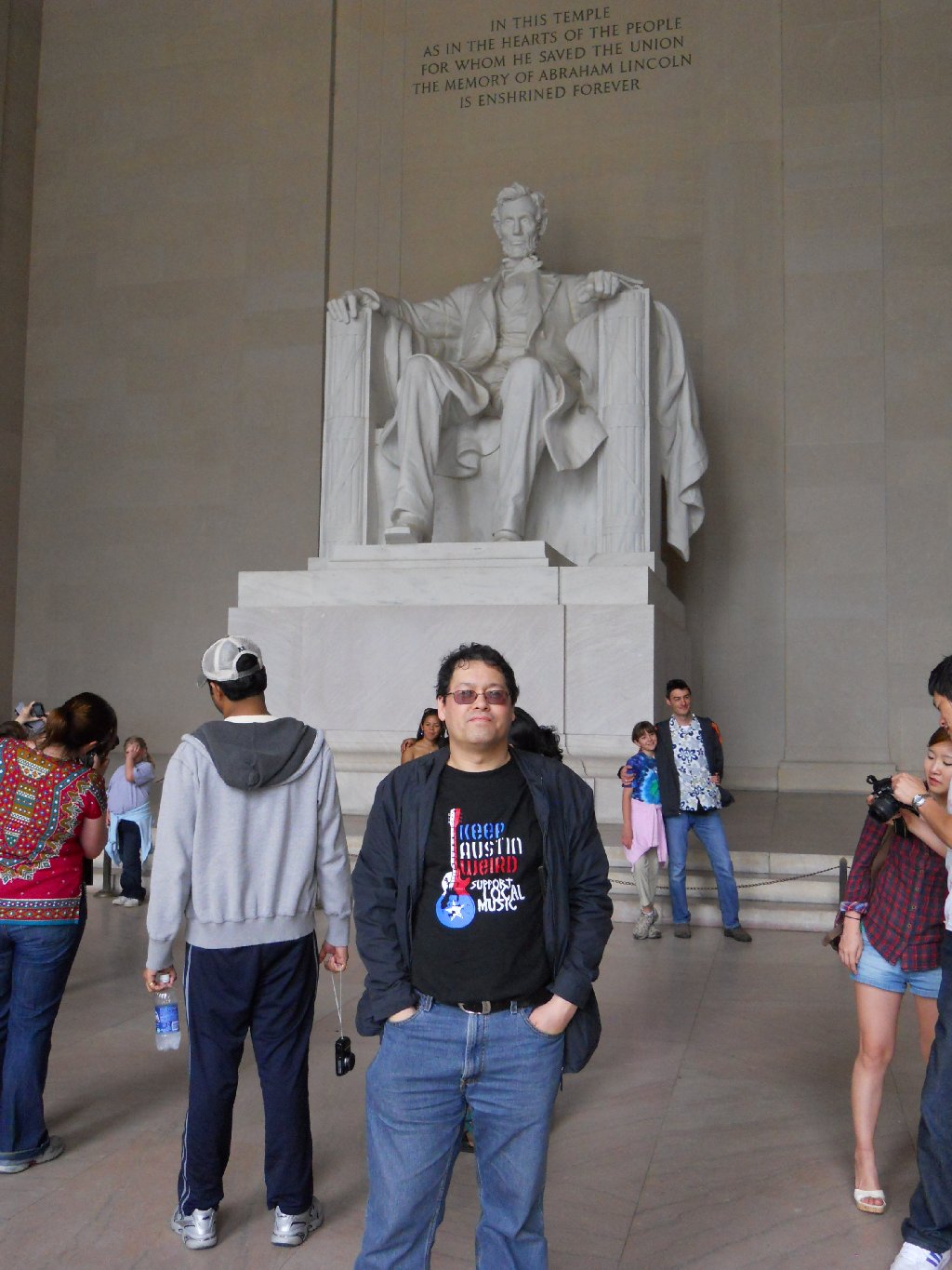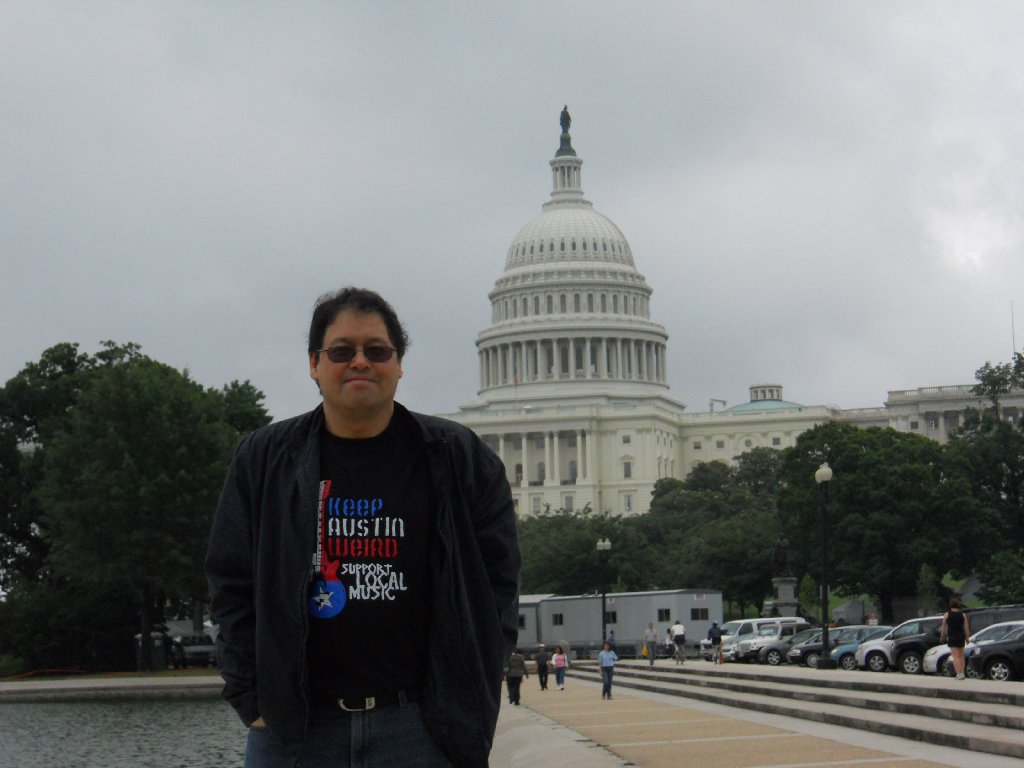 white shirt, bow tie, Way of the World, Come On Come On, (RN guitar solo intro to…) California Man, Miracle, I Want You to Want Me, These Days, Baby Loves to Rock, Heaven Tonight, On Top of the World, 70’s Song, Need Your Love, Miss Tomorrow, Ballad of TV Violence, Sick Man of Europe, Closer (The Ballad of Burt & Linda), The Flame, Surrender // (encore) Dream Police, Auf Wiedersehen, Goodnight Now (with 3 endings) The show opened with “Way of the World”, and whilst the wet and bedraggled crowd was not as large as it would have been had it been dry, they were certainly enthusiastic and pleased to see the headliners. It was still raining, but only lightly. The set continued with “Come On Come On”, then a Rick solo guitar intro into “California Man”. After that, Rick said “Thank you very much. If it rains even harder, don’t worry, WE’RE covered!” he joked. “Well, if it rains harder, we’ll invite you all on stage! We have a new CD, DVD, 8-track, our 28th or 29th… we still call them “records”… we’re too dumb to quit! Here’s Robin on the Mandocello” - the band went into “Miracle”. Next up was “IWYTWM” with Rick having to change guitar mid-song. Afterwards, he introduced the band, ending with “Magic Christian on keyboards. Hey Magic, is it your birthday today? How old are you? 39?!” The band continued with “These Days”, and then an energetic “Baby Loves to Rock”. At the end of that, Rick gave his guitar to a fan in front. Despite the poor weather, the band were putting on a nice show and not worrying about the light rain blowing onto the front of the stage, or the water dripping down further back on the stage from the roof. However, the techs had to keep unobtrusively running on throughout the show and wipe off the worst of the water off key parts of the stage. “Heaven Tonight” was deep and intense as always, and during it the rain became heavier again. The weather echoing the sombre mood of the song perhaps. The tempo lightened and increased, with “On Top of the World” and “That 70’s Song” continuing the set. During the next break, Robin’s young daughter and I carried a large birthday cake onto the stage to surprise birthday boy Magic Christian with. He was pretty shocked I think! We managed to get the cake on, get him to blow out the candles, and get the cake back off stage without any mishaps, thankfully. The band started up “Need Your Love”, and the front of the stage was very wet. Luckily, neither Rick nor Robin went too close to the edge. After that song, Rick spoke again “I wasn’t joking about the 8 track. We’d like to thank each and every one of you for helping make it #1 in the world! Every week around the world, Cheap Trick is #1! The album, cassette etc are very close behind! And if you go to our website you’ll see lots of stuff you’ve seen before!” Someone shouted something from the crowd to which Rick replied “Of course you’ll get a free player with it!” By now the rain had eased up but was still dripping onto various parts of the stage. The set continued with “Miss Tomorrow”, then “Ballad of TV Violence”. Rick’s tech must have wondered why he bothered, as mid-song, he wiped the floor again in front of the steps. Rick immediately took his cup of iced water and threw it over the just wiped area! Next was “Sick Man of Europe”, after which someone from Europe was brought onto the stage by Rick and made to say a few words. One day I’ll actually say something vaguely interesting… Next was “Closer: The Ballad of Burt & Linda”, followed by “The Flame” and “Surrender”. Robin thanked the crowd for coming out to see Cheap Trick before leaving the stage. Rick returned to the stage, asking the crowd “Does that mean you want to hear some more?” (answered with a very loud YES!!). “Are you SURE you want to hear some more?” (Again, YES!!) As the rain came down harder, the band played “Dream Police”, “Auf Wiedersehen” and “Goodnight Now” with 3 endings. The show ended at 9.51pm. It had been a miserable afternoon and evening for the crowd, well, for those who didn’t have really good rain gear. The rain had kept falling from mid afternoon, at times very hard, and I guess it would have been an understandable decision if the show had cancelled before Cheap Trick came on. However, the rain had lightened 45 minutes before they took to the stage, and despite getting harder during their set, the band played the complete show and didn’t hold back in any way because of the weather. Bravo to both the hardy crowd and to the band and their crew for keeping the show going. After the show I met up with a couple of friends, Kenny & Missy from Florida at a nearby brewpub, and we ate and caught up. That was very cool. If you have the foldout “Silver CD”, Kenny is the guy in the checkerboard shirt looking cool and calm almost next to me in that crowd picture. It was still raining hard when we left the pub at 12.30am, the last folks in the joint. Sunday 23 May - Monday 24 May (sightseeing in Washington DC and travelling home) As usual I was awake early, despite not wanting to be. I checked out of the hotel at 8.30pm, as my flight out of Dulles wasn’t until almost 7pm. I was therefore using the day to sightsee in Washington DC, something I hadn’t done in 8 or 9 years. The morning was dull and drizzly, which wasn’t very promising. I parked at the Vienna Metro station and took the metro into DC. Thankfully it wasn’t raining in the capital city, though it was damp, humid and warm. What can I say? I walked and walked for hours. From L’Enfant Plaza I went into the wonderful National Air & Space Museum, the new Museum of Native Americans (very nice), the front of the Capitol and up past the FBI building. Had a quick lunch in the Hard Rock Café, but no Cheap Trick on display. Then up to and around The White House, the World War II Memorial, down past all the d